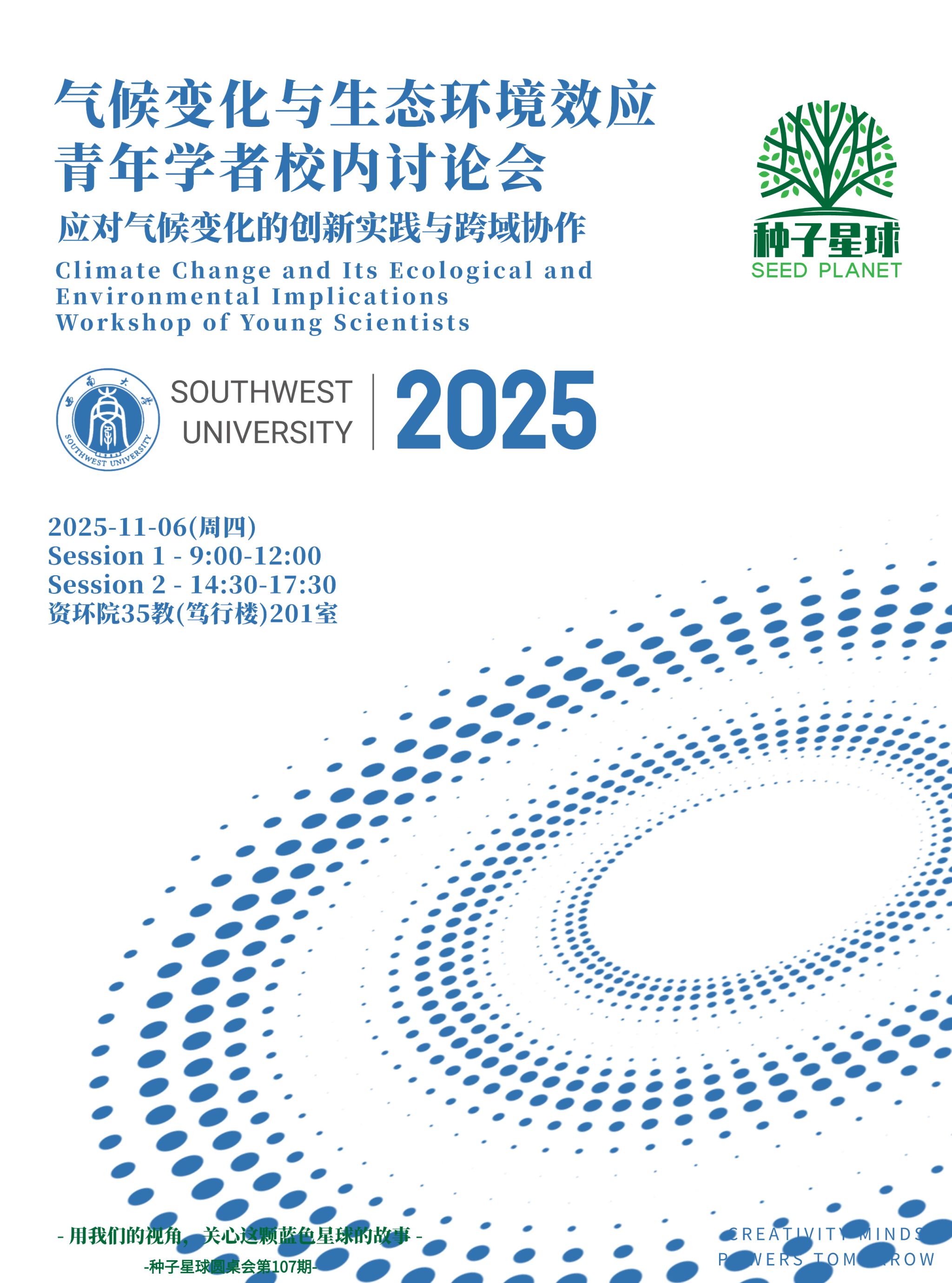 由英国上市公司365资环院、气候变化与生态环境效应青年研究群体(CCEI)联合种子星球主办的 2025 气候变化与生态环境效应青年学者讨论会,将于2025-11-06(周四)举行!