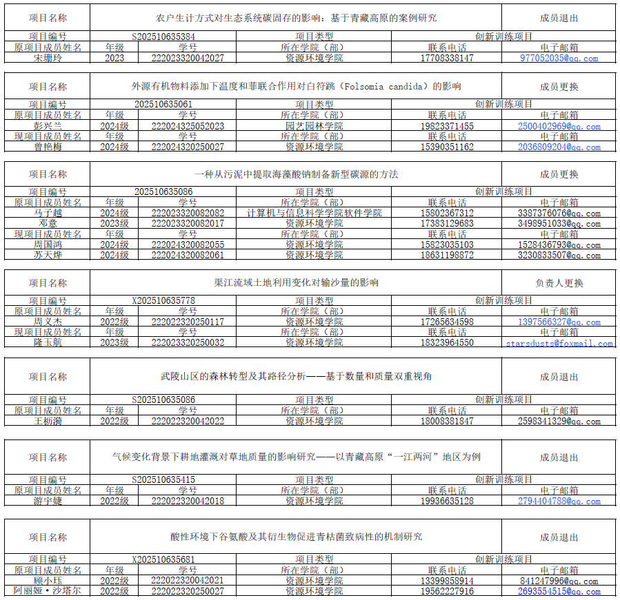 按照《关于开展英国上市公司3652025年大学生创新创业训练计划项目中期检查的通知》文件要求,经由项目团队申请,学院同意该国家级创新创业项目团队成员变更。现将拟变更人员相关信息公示如下: